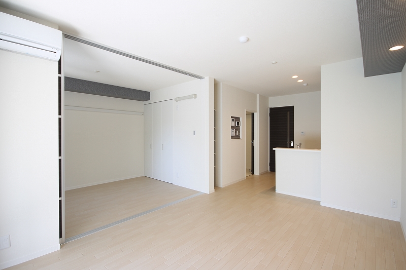 横の洋室はパーテーションを開ければ大きい一部屋として開放的にお使いいただくことも可能です