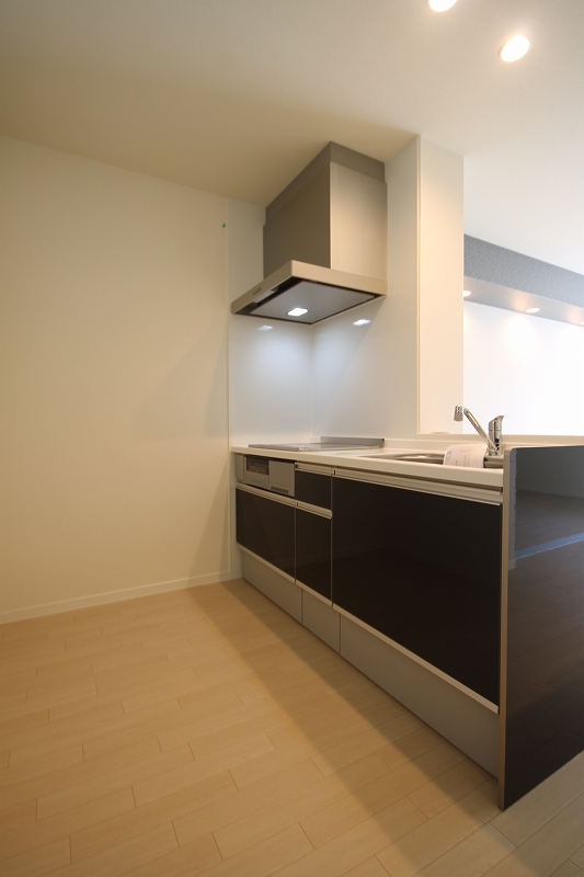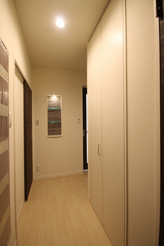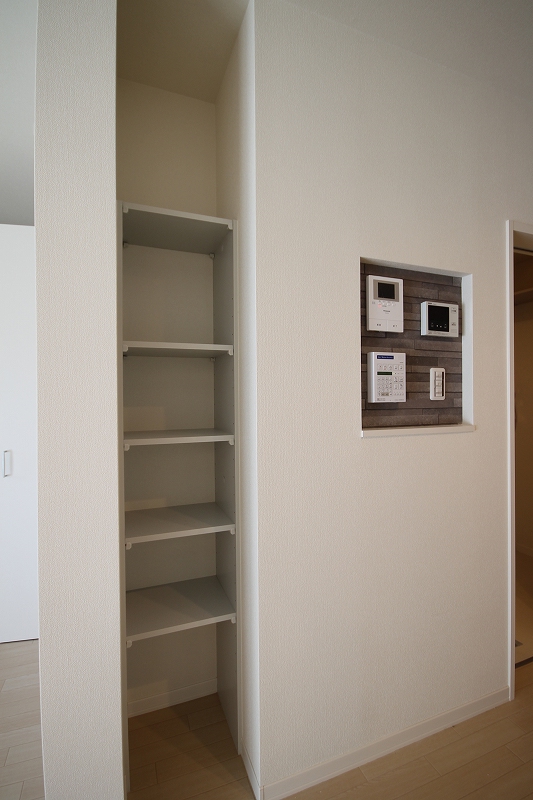 キッチン横にはしっかりと収納があり、ニッチで設備関連がまとまっているのでスタイリッシュにきれいになっております