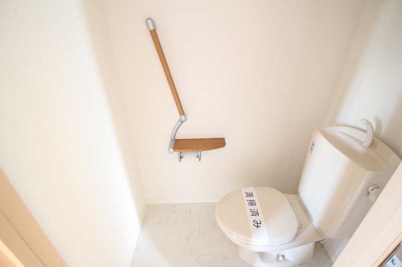 お手洗いはこんな感じで手すりやタオル掛けなどおしゃれな感じのデザインとなっておりますね