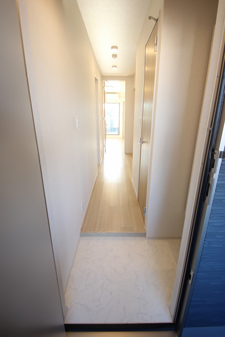 玄関を開けるとこんな感じで、白っぽい色合いを基調とした清潔感のある内装になってますね