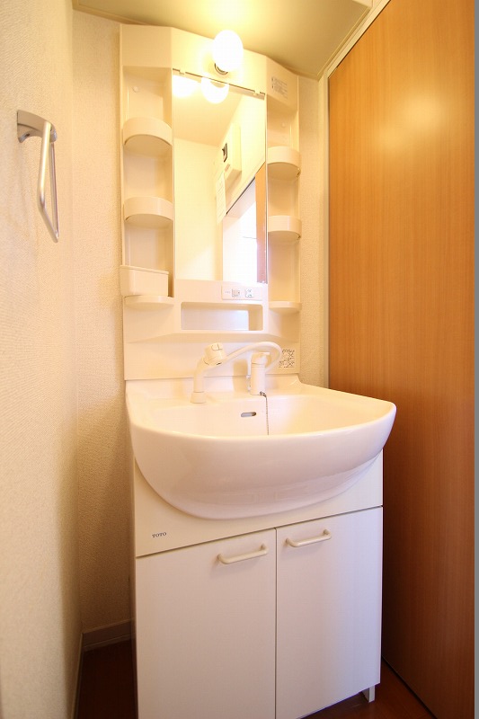 洗面台はシャワー付きの独立タイプなので、とっても便利です。