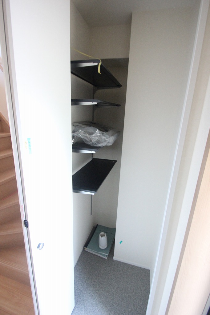 靴箱はこんな感じで旅行鞄などを一緒にしまって置けるようなスペースのお造りとなっております