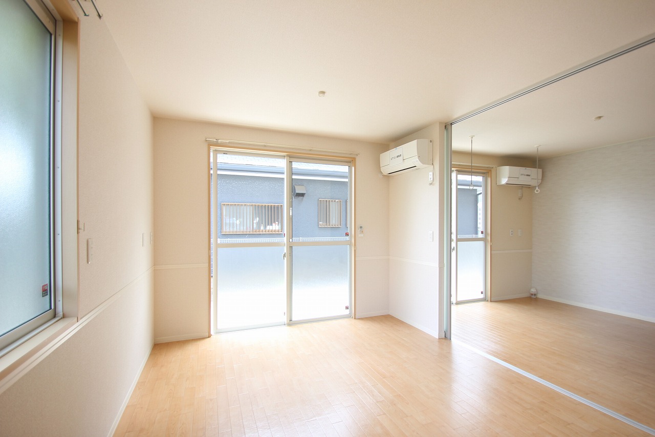 リビングも洋室も窓が大きく陽の光が入りやすいようになっております。