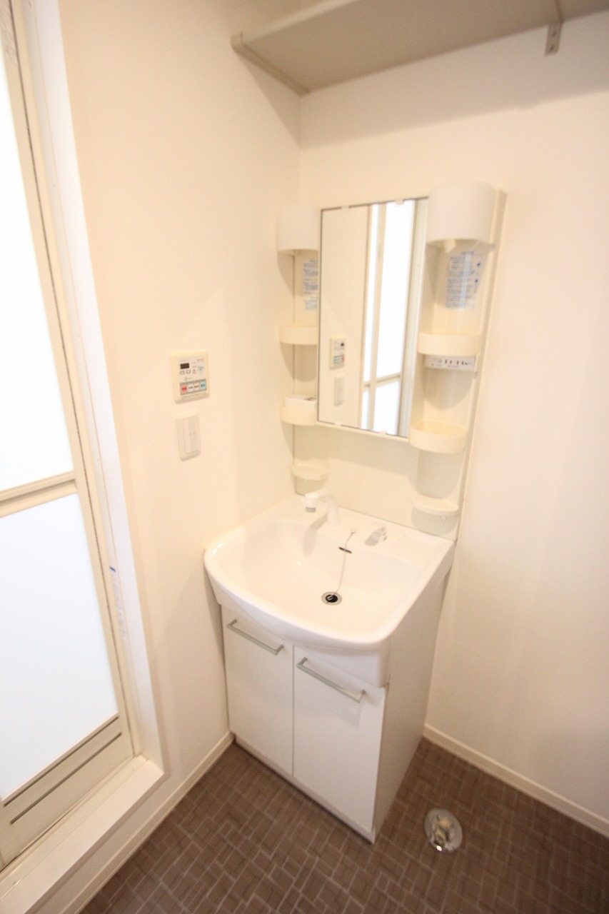 洗面所はシャワードレッサータイプの独立洗面台で朝の忙しい時間の必需品です
