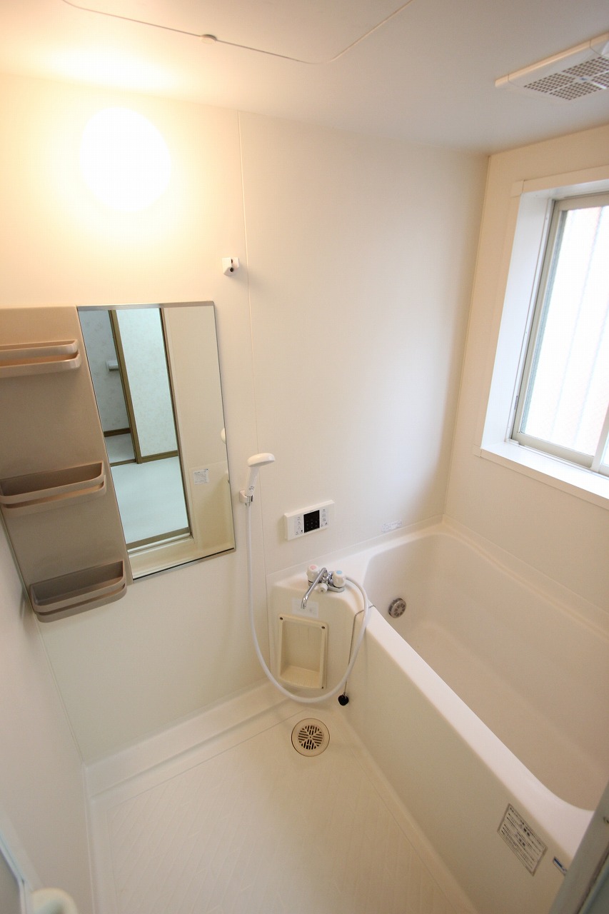 お風呂は追い炊き機能付きのシャンプーホルダーなどが付いているタイプです