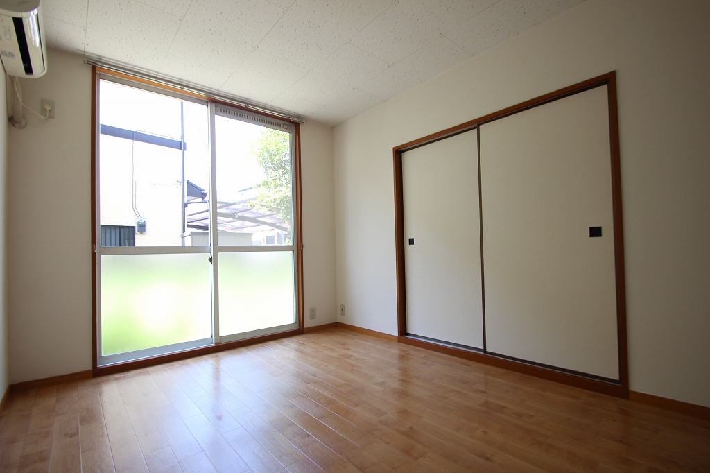 左側の洋室はエアコンが設備されており、窓も掃き出し窓のタイプとなっております