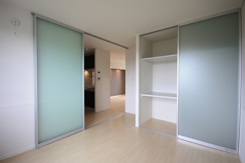 キッチン横の洋室は間仕切りでLDKとつなげることができるタイプのお部屋で収納もしっかりと大きめのものが用意されております!