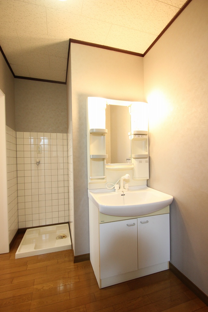 洗面所はこんな感じでシャワードレッサータイプの独立洗面台がございます