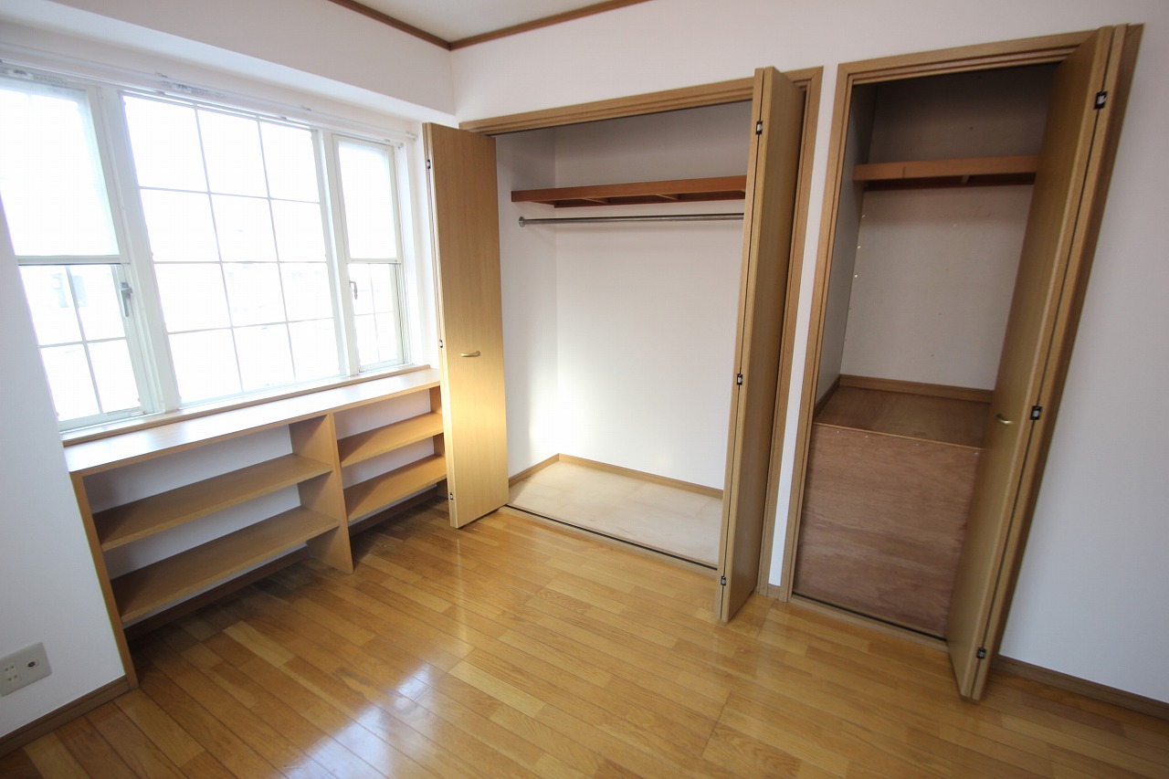 バルコニー側の洋室もこんな感じできちんと収納もあり、部屋分けをするのにも適していることが分かりますね
