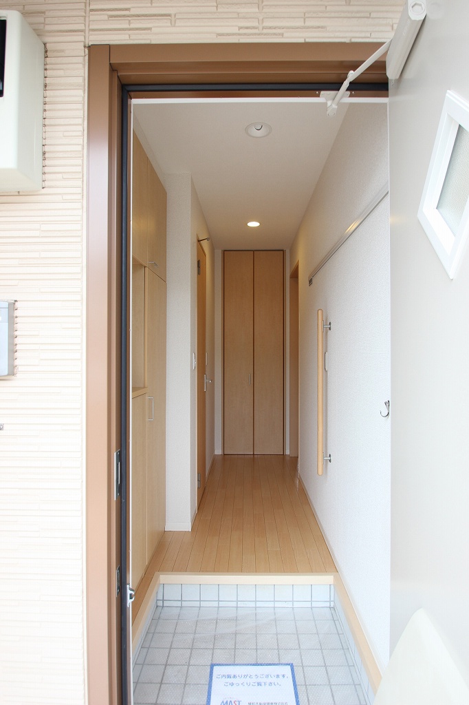 玄関を開けるとこんな感じで部屋の中がすぐに見えない廊下の部分となっております