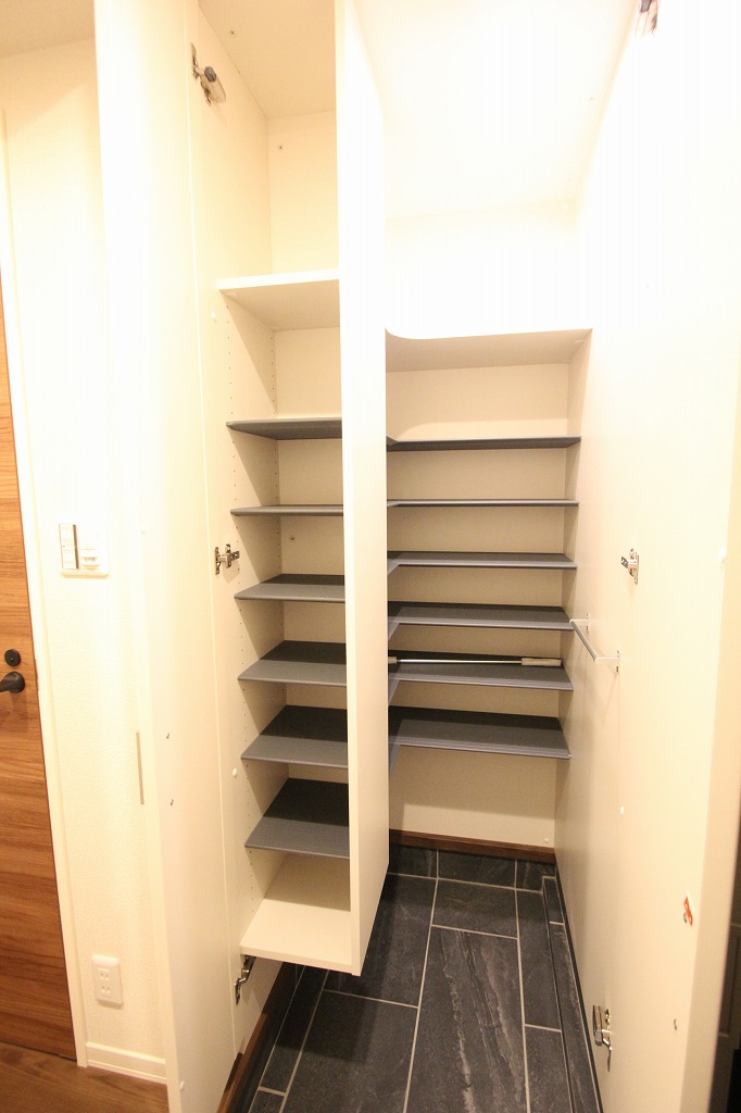 シューズボックス部分はこんな感じでシューズクローゼット仕様になっており、広めの収納になっております