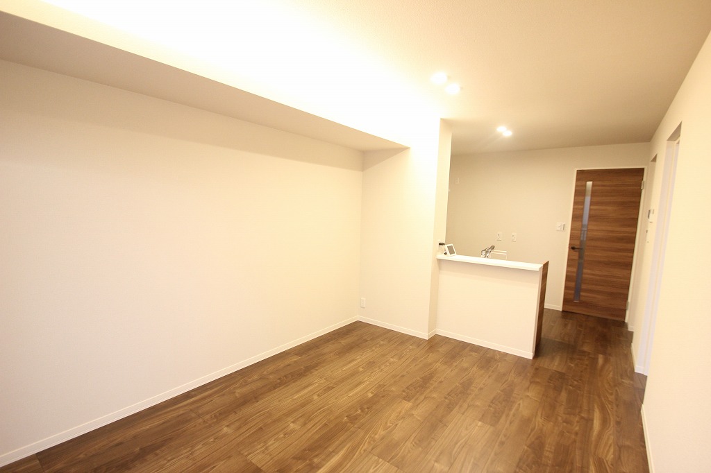 キッチンに吊戸棚がない為、明かりが全体的にきれいに映えてバランスが良く見えますね