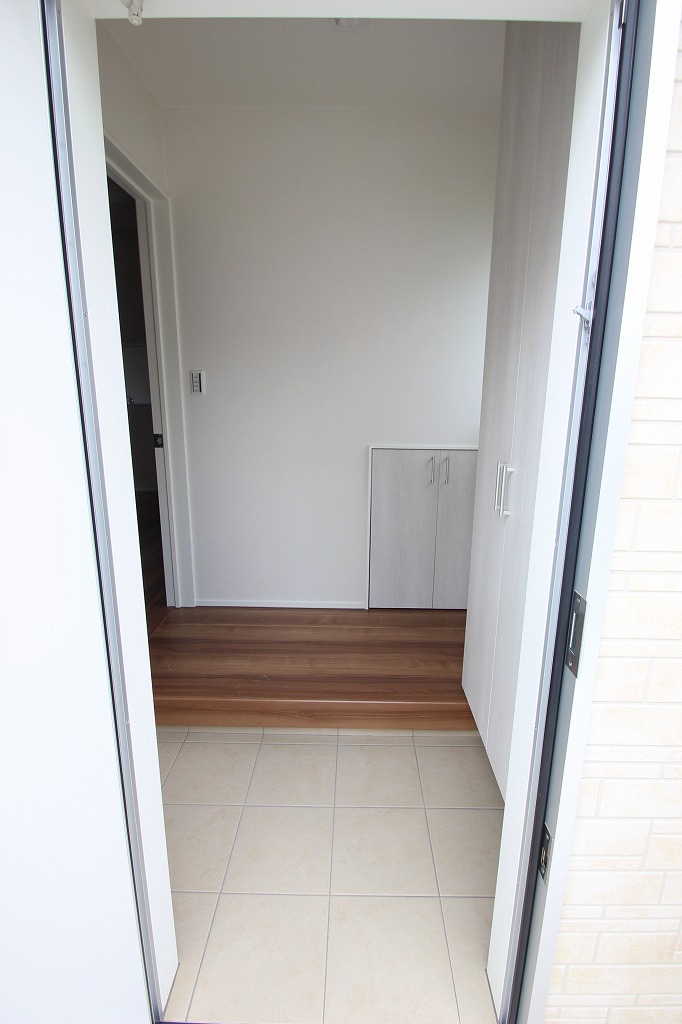 玄関はこんな感じで戸建ならではの広い土間部分に靴箱と収納が目に留まりますね