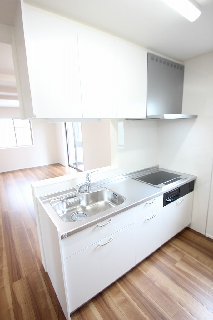キッチンは対面式のシステムキッチンで広いシンクに広い調理スペースがおススメポイントです
