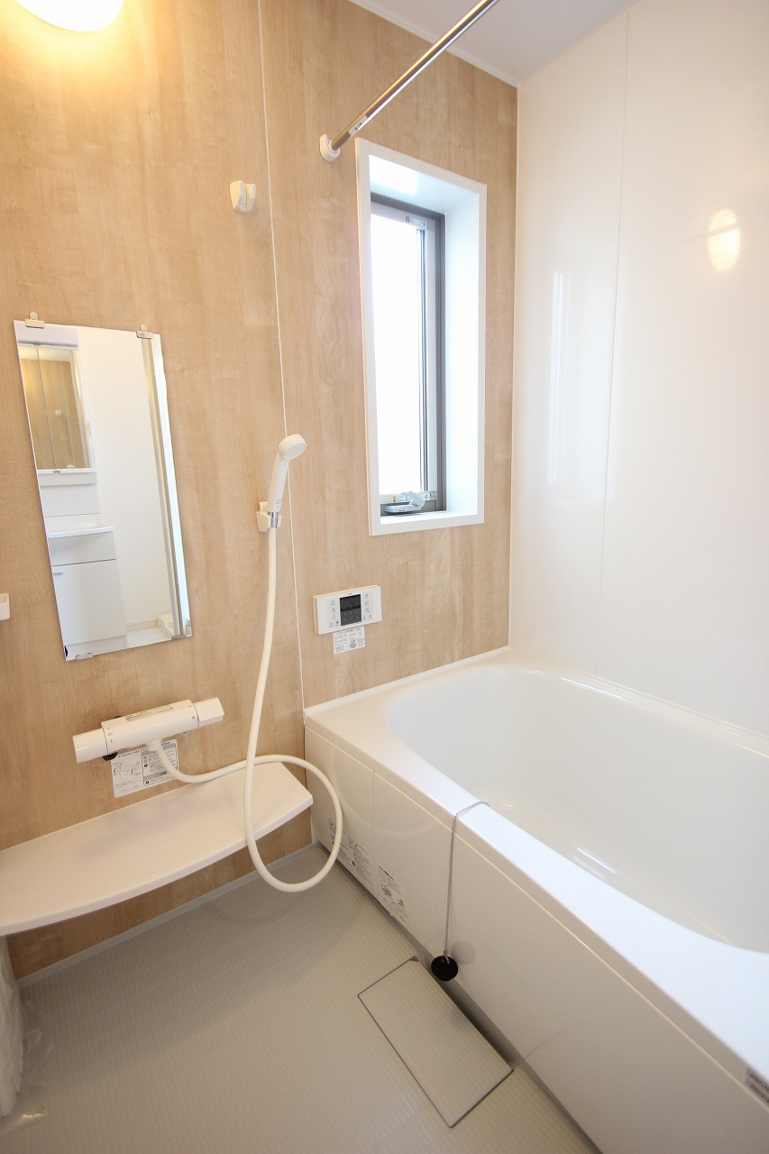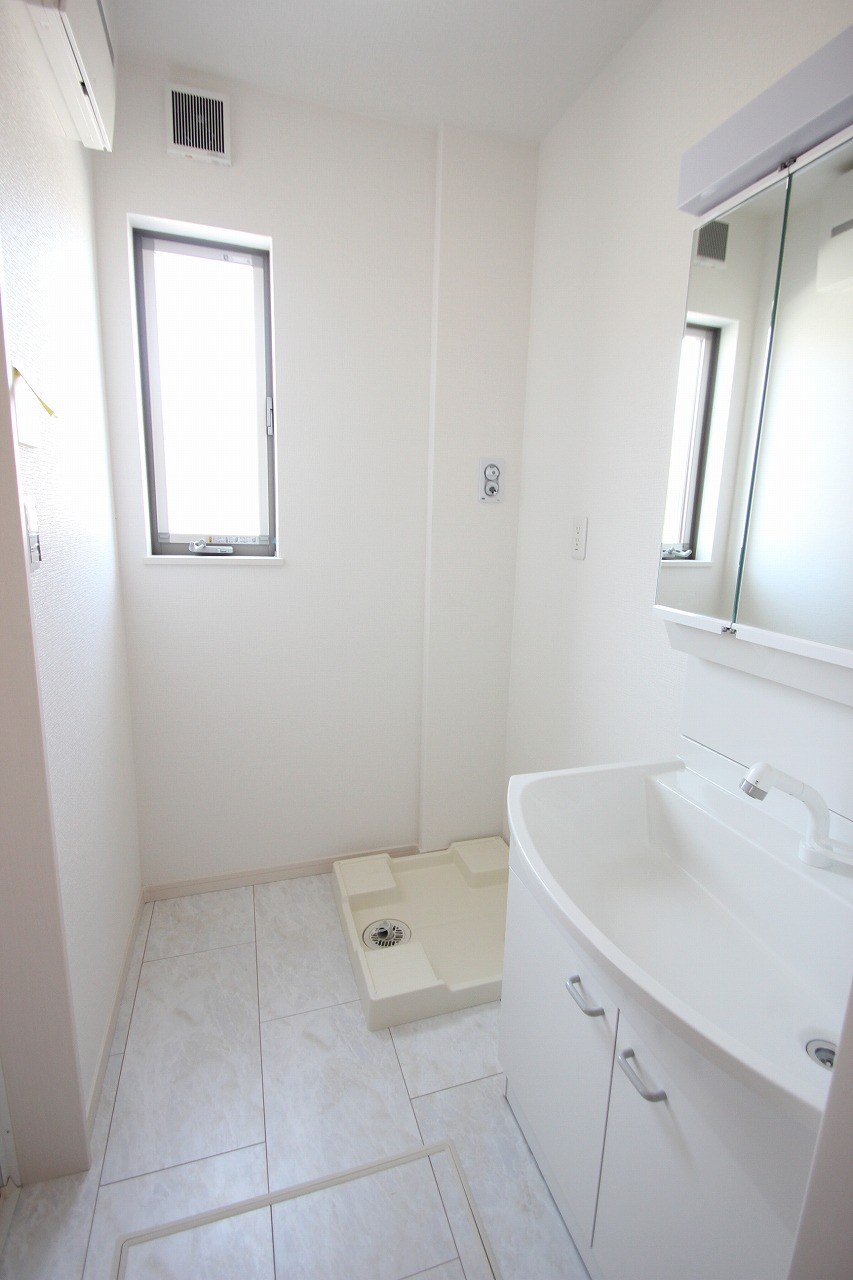 浴室乾燥機能に三面鏡タイプの洗髪洗面台。