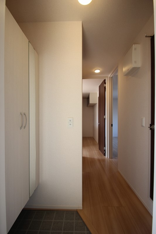 玄関を開けるとこんな感じでシューズボックスが広めのものが付いておりますね