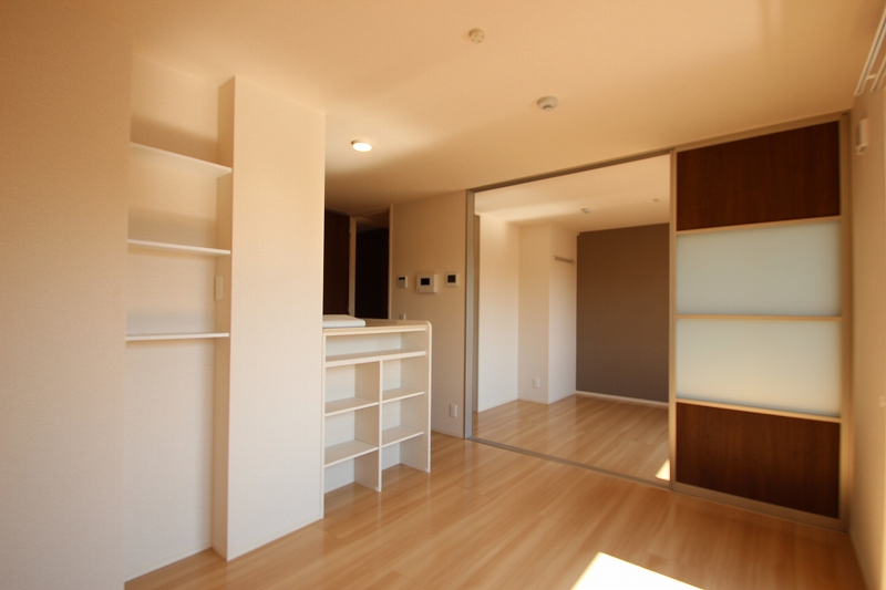 リビングはこんな感じで収納棚がもともとついており、用意するものが減るのが良いポイントかなと思います