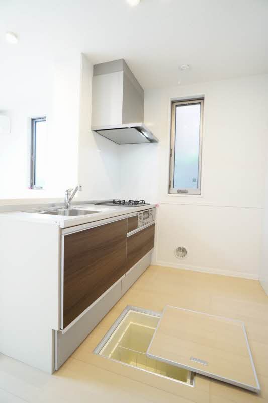 システムキッチンになっており、床下収納がございますので収納スペースが多いです!さらにカウンターキッチンになっていますので解放感抜群です!!