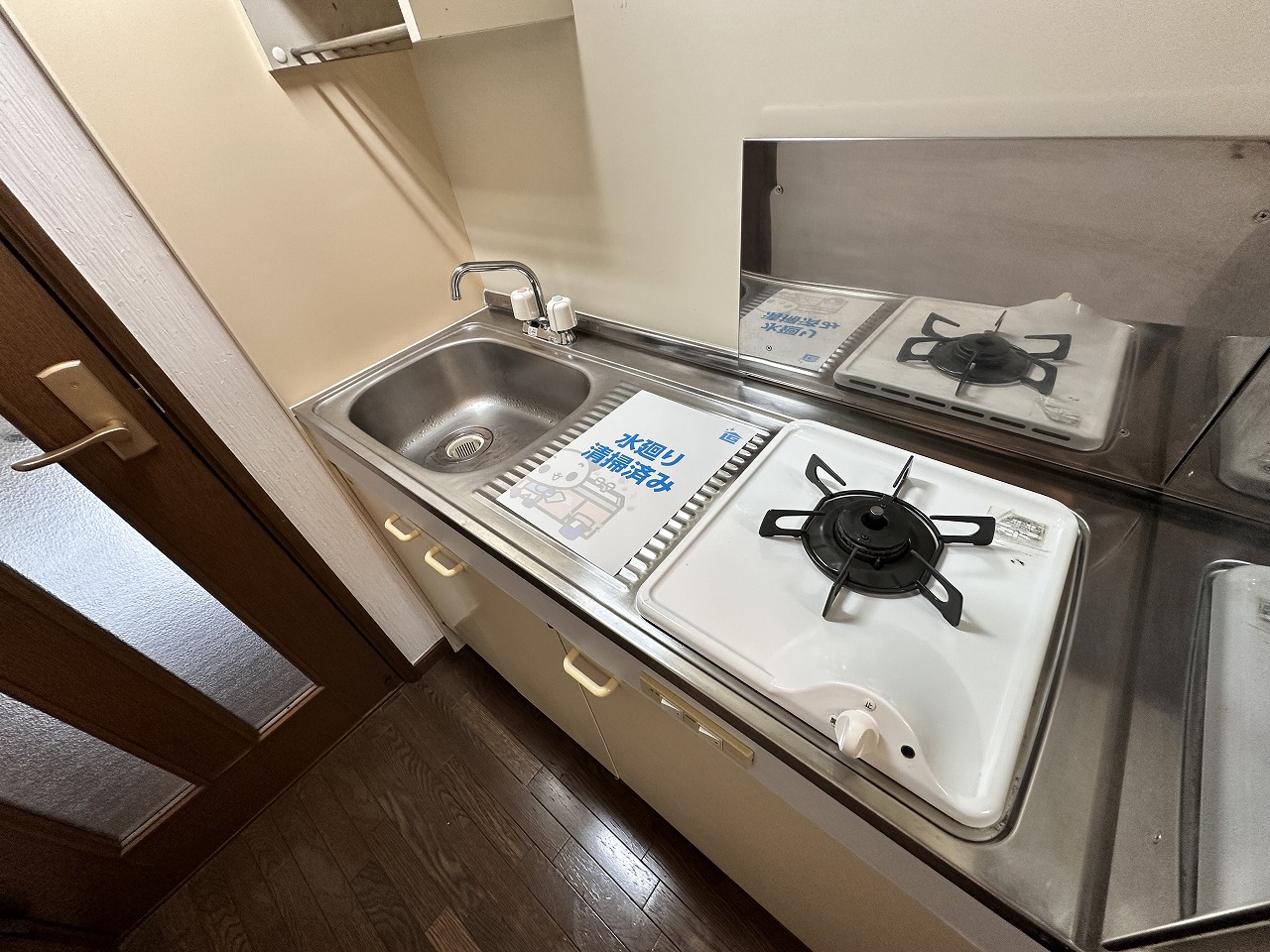 キッチンはこんな感じで一口コンロの仕様ではありますが、調理スペースがしっかりございますので自炊もしっかりできそうですね