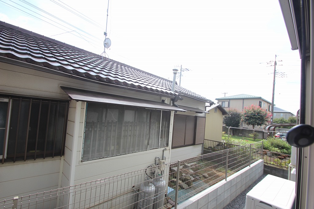 掃き出し窓の外はおうちがありますが、平屋のおうちなので、日当たりは悪くなさそうですね