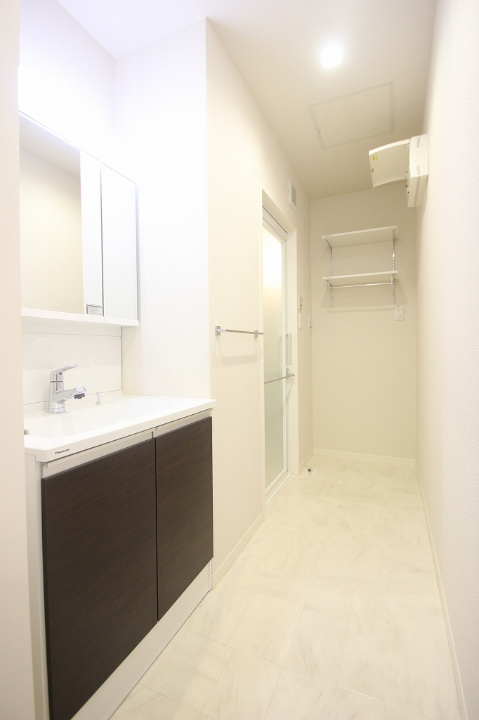 洗面所を使いながら奥で体を拭いたり、洗濯機を使ったりとできるぐらいには広いお部屋になっておりますね