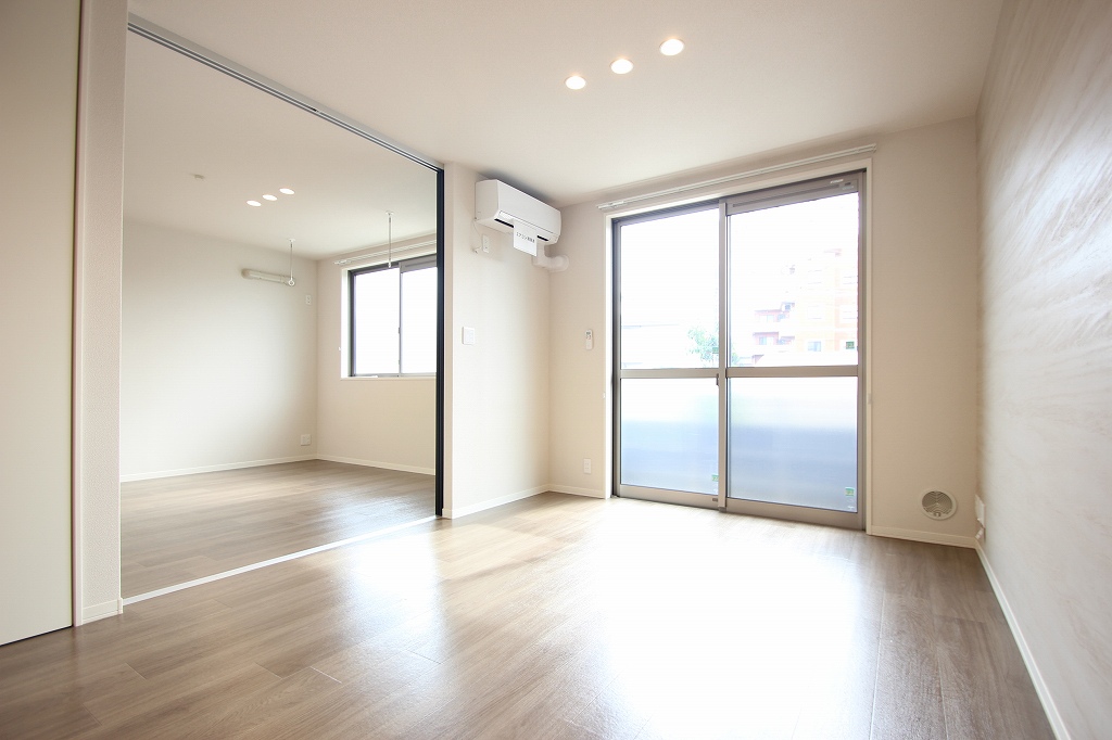 洋室との境も間仕切りで仕切られておりますので大きい一部屋としてお使いいただくことも簡単にできますよ