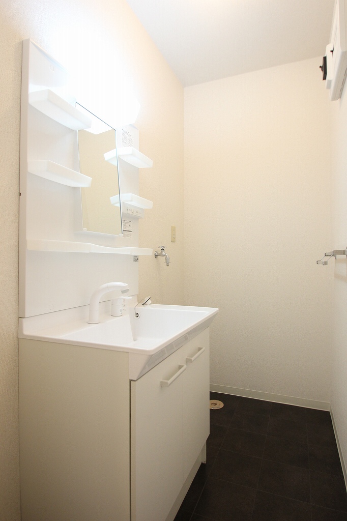 独立洗面台は、シャワードレッサーなので、朝の身支度がとても快適です