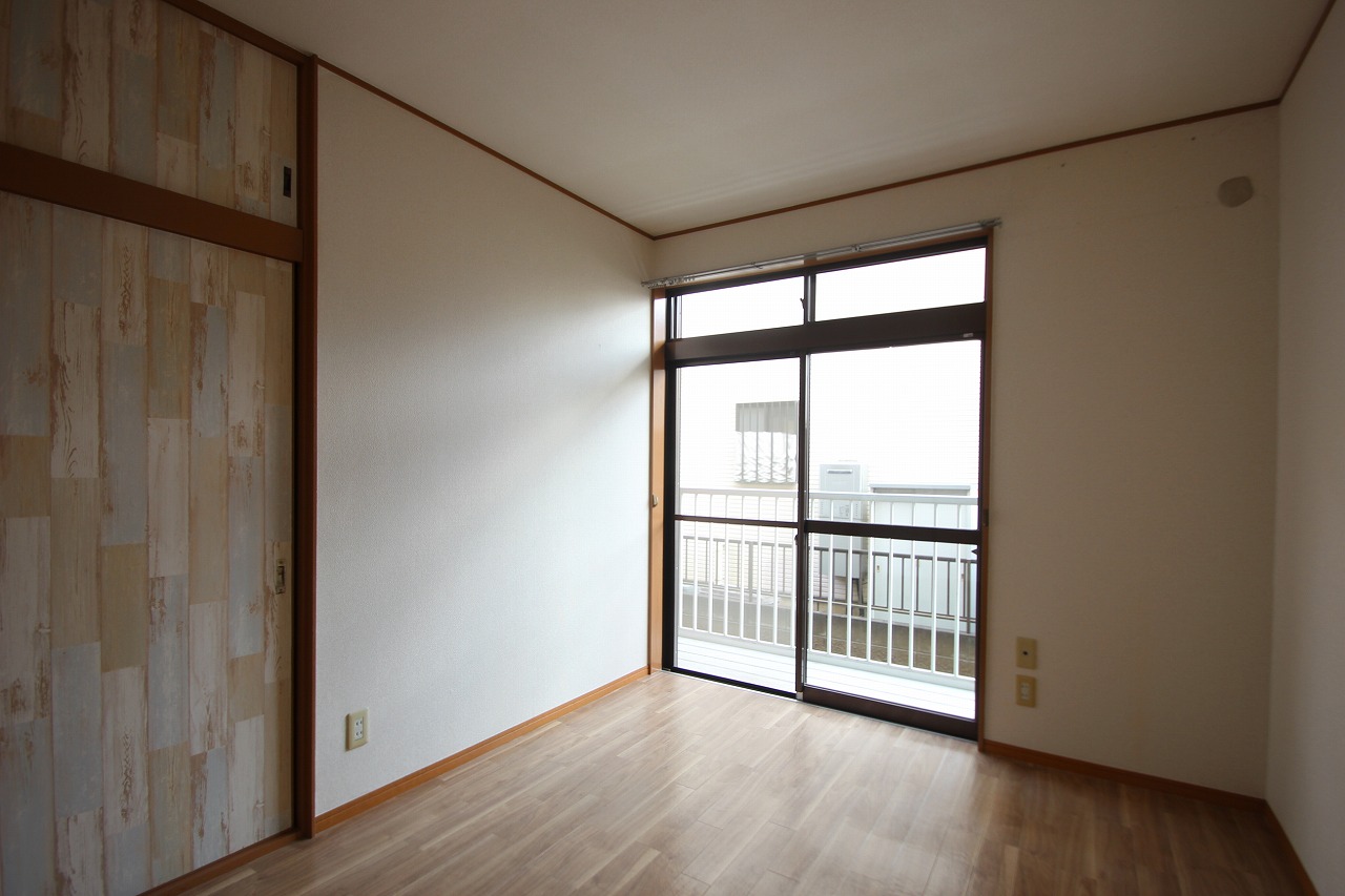 入ってすぐ右手の洋室はしっかり6帖あり、DKとつながっている洋室と一緒でベランダに出ることのできる掃き出し窓が付いております