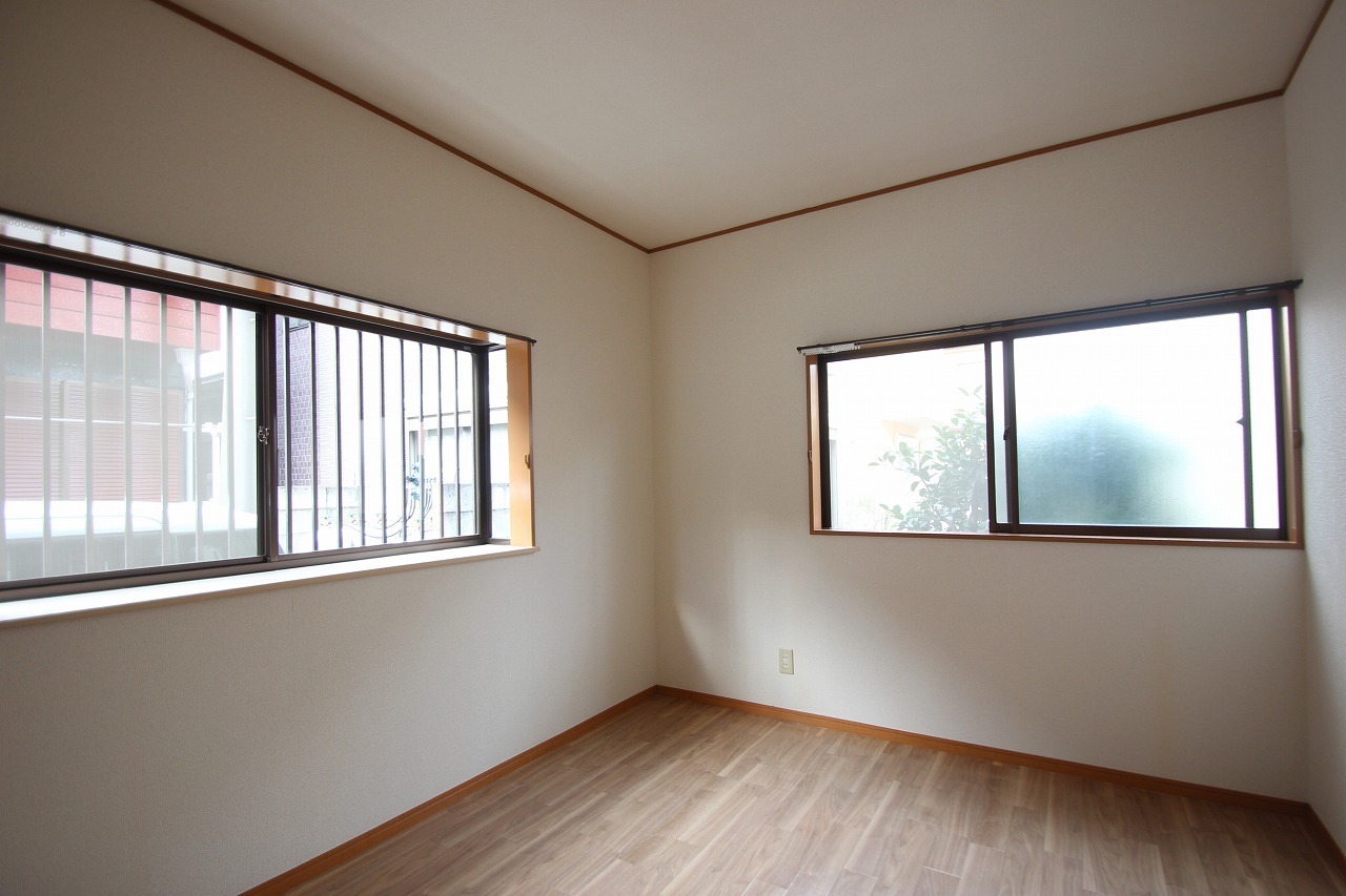 DK横の玄関側洋室はこんな感じで二面採光となっておりますので日中は意外と明るい感じです