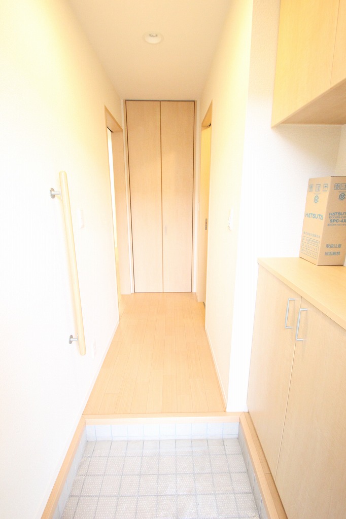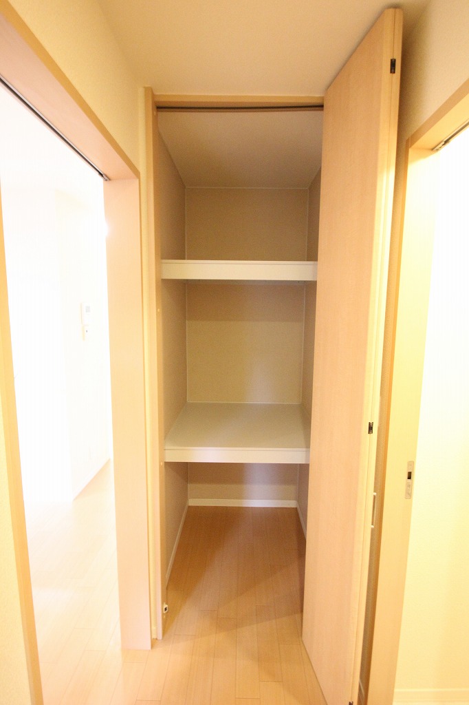 玄関収納は大きめかつ、突きあたりには棚収納が!!