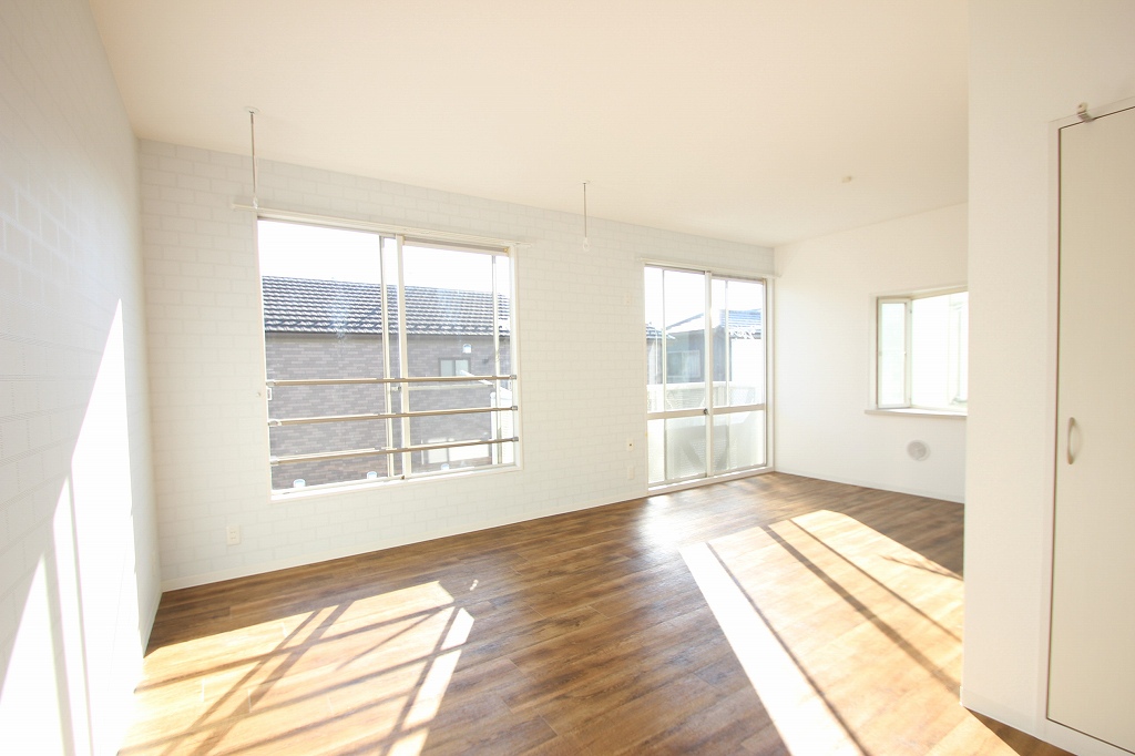このお部屋、ご覧ください、日当たりが本当に良いんですよね。床の木目と白い壁に光が差し込んで、すごく明るい印象です。