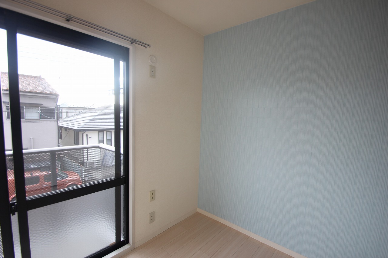 例えば、こちらは爽やかな水色のクロスが印象的な洋室です。気持ちが明るくなるような色味で、寝室や趣味の部屋にぴったり。