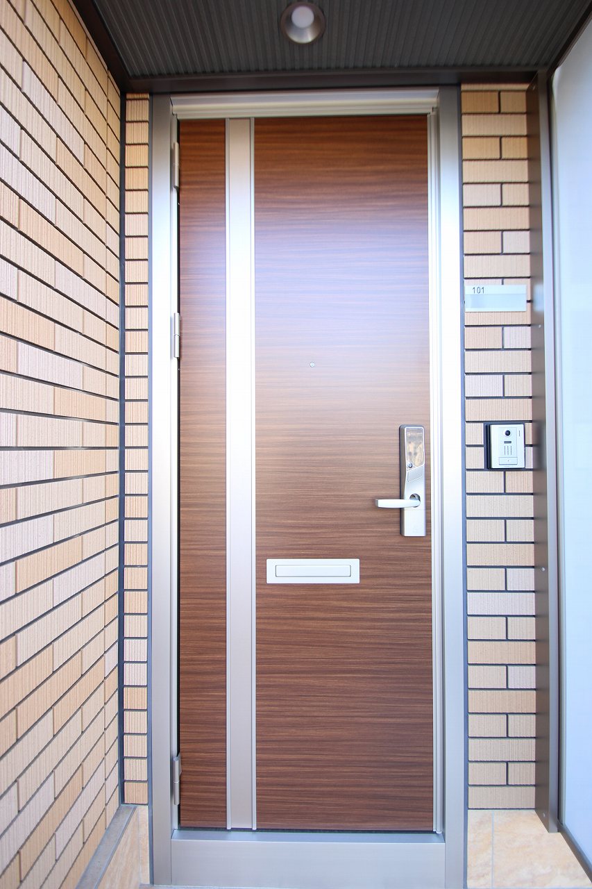 見てください!アパートやマンションというより、まるで戸建てのようなデザイン性の高い玄関ドアでしょう?