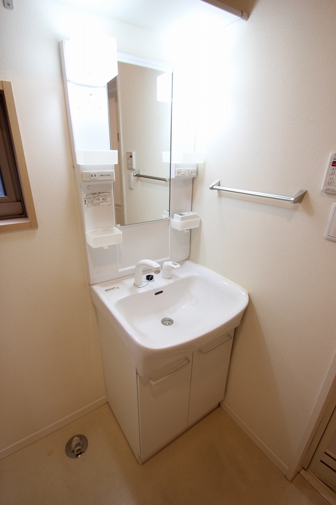 この広々とした洗面ボウルと、鏡の裏にも収納があって、散らかりがちな洗面周りもスッキリ整頓できそうです。