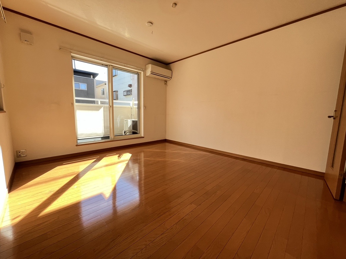 そしてこちらが洋室です!見てください、この広さ!ゆったりとした空間で、家具の配置も色々楽しめそうですよね。日当たりもとっても良いんですよ!