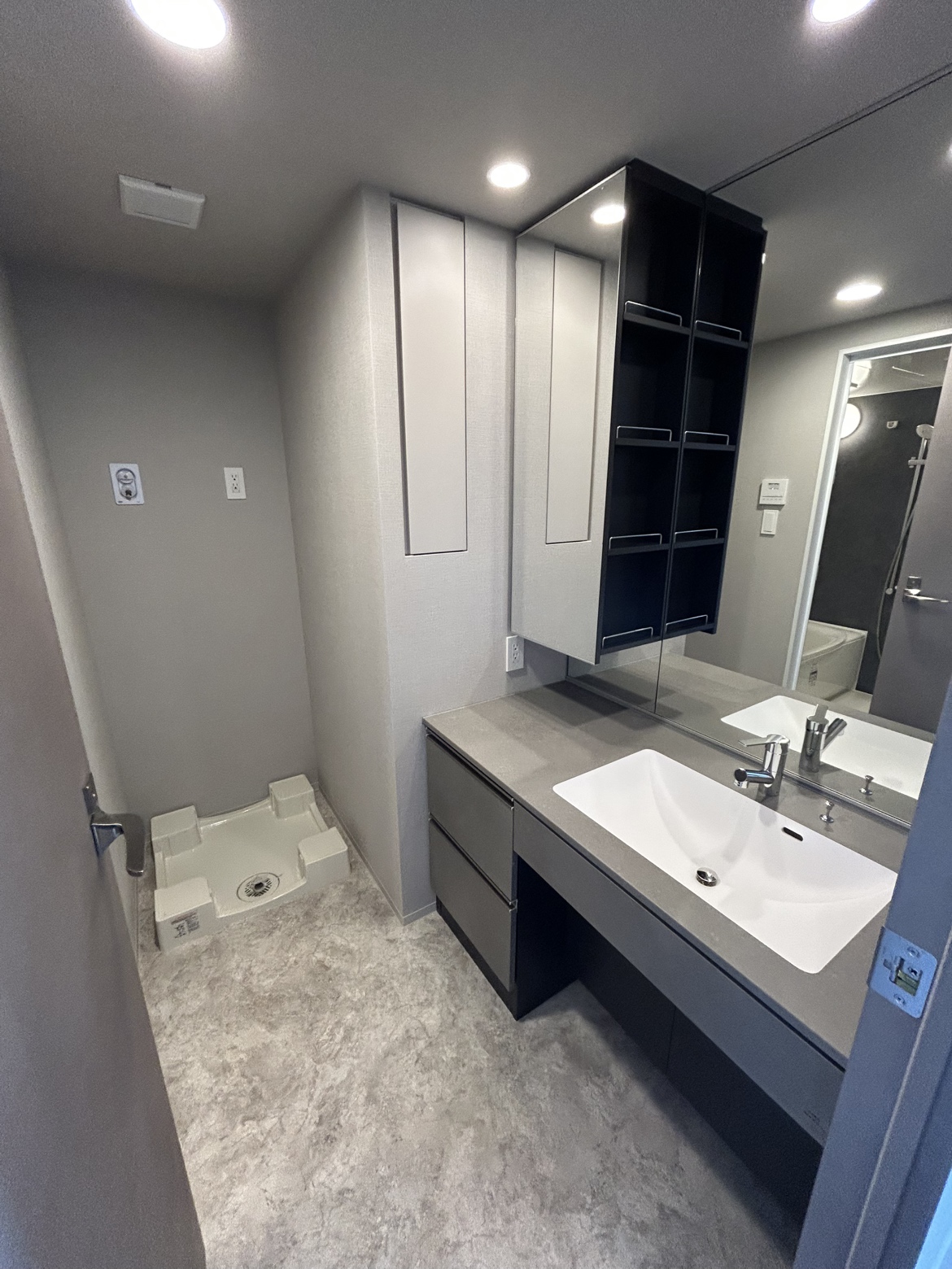 洗面台のミラーキャビネットも、歯ブラシや化粧品など、細々したものを整理するのに便利なんです。