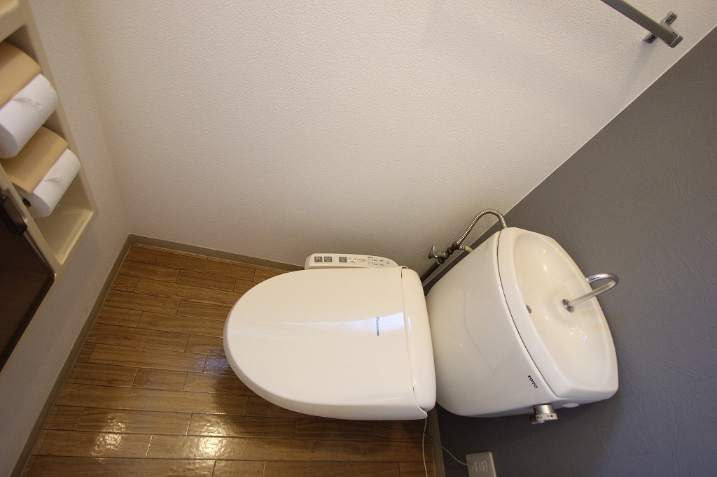 ウォシュレット付きなのはもちろん、上部の棚に芳香剤やちょっとしたインテリアを飾るのもいいですね。