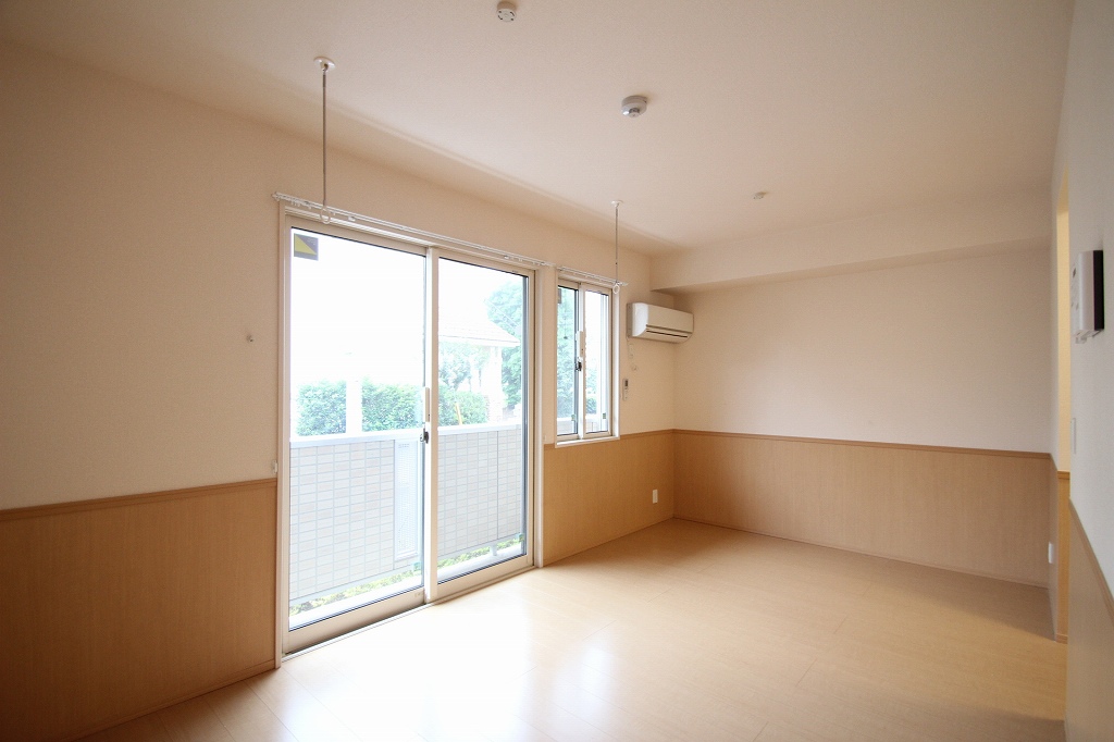 大きな窓から日差しがたっぷり入って、気持ちよさそう!エアコンも設置されているので、入居したその日から快適に過ごせます。