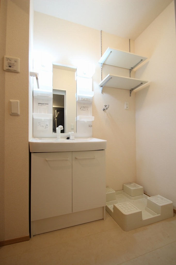 棚もついているので、タオルやストック品を置くのに重宝しそうですね。