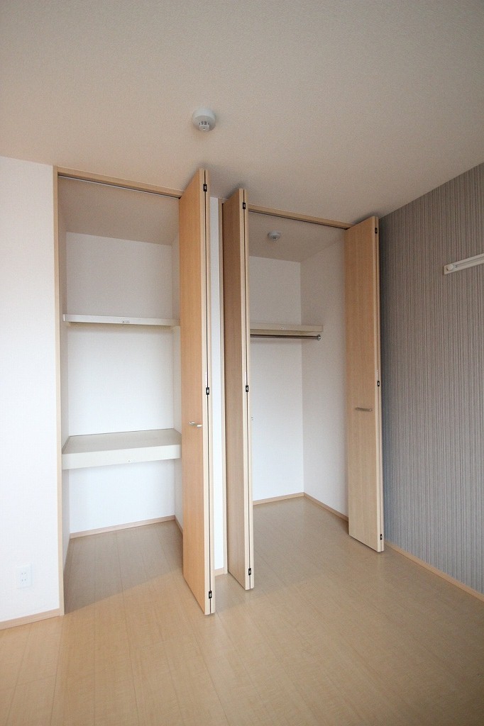 見てください!奥行きもあって、たっぷり収納できるクローゼットが備え付けられています。これならお洋服が多い方も安心ですよね。