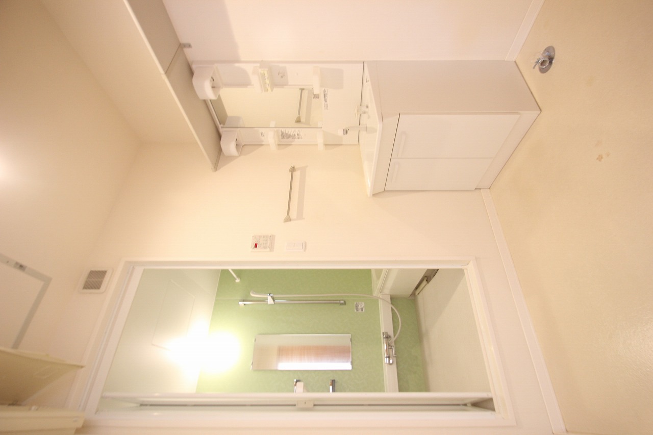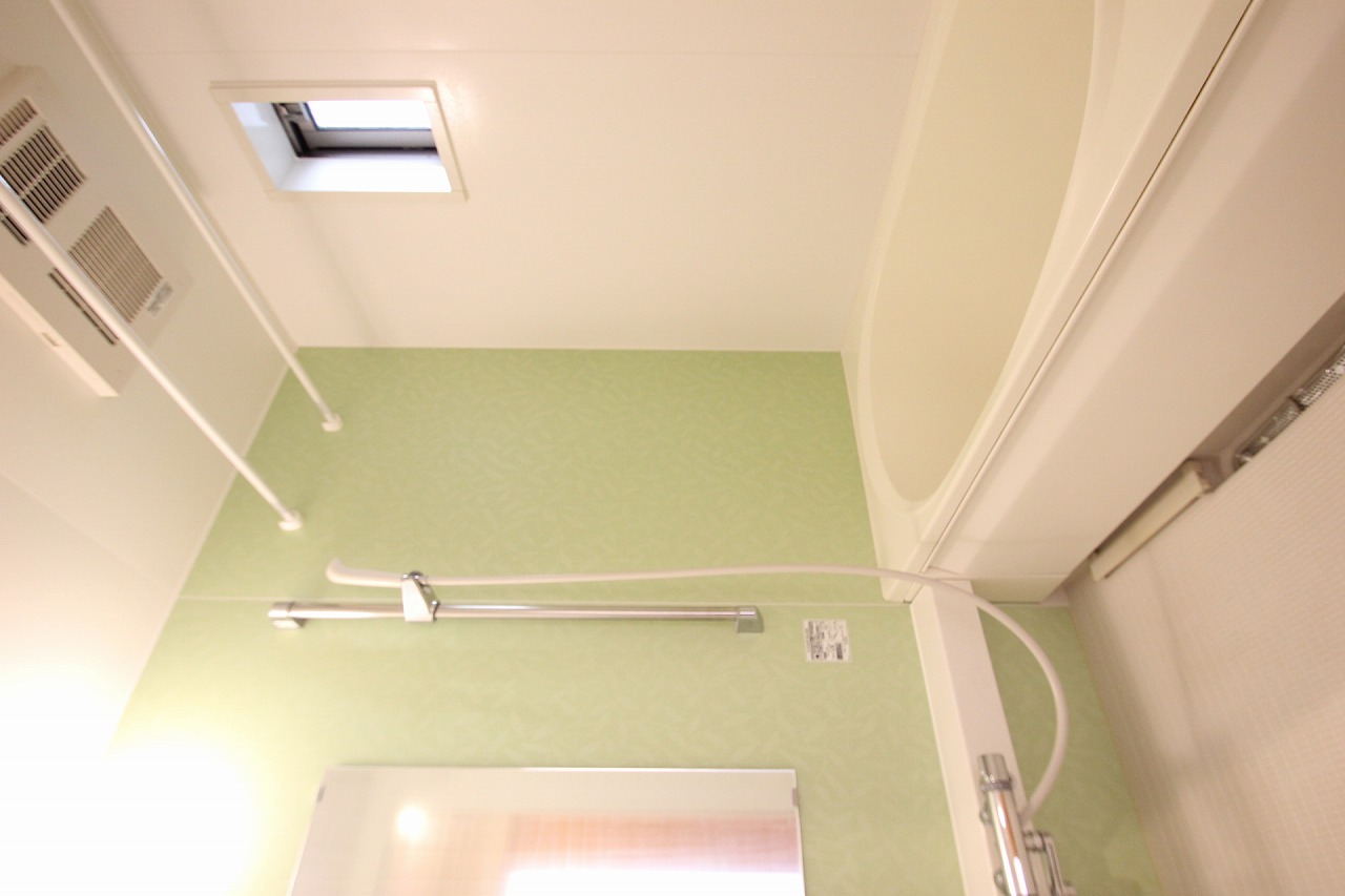 そして、こちらが浴室です!淡いグリーンの壁がアクセントになっていて、とっても落ち着く空間ですよね。