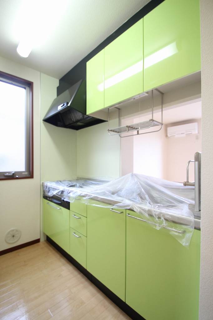 鮮やかなライムグリーンのキッチンは、お料理タイムを明るく彩ってくれそうじゃないですか?