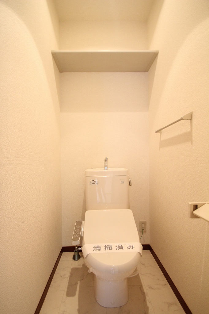 こちらも清潔に保たれており、上部には便利な棚も付いていますよ。