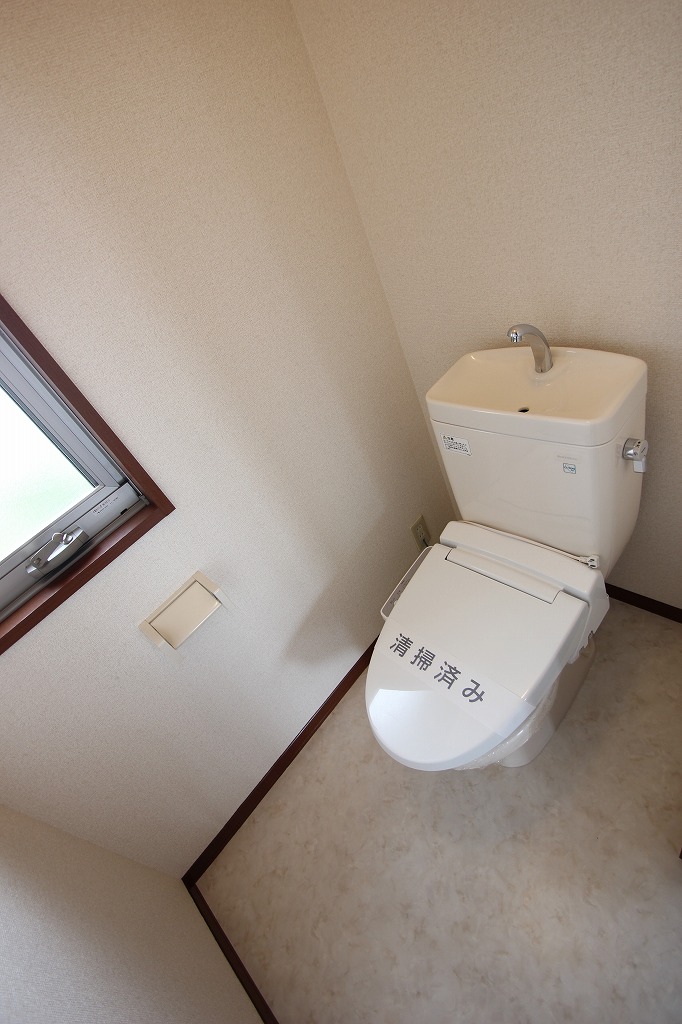 トイレも窓付きで換気もばっちりです。いつでも清潔に保てますね。