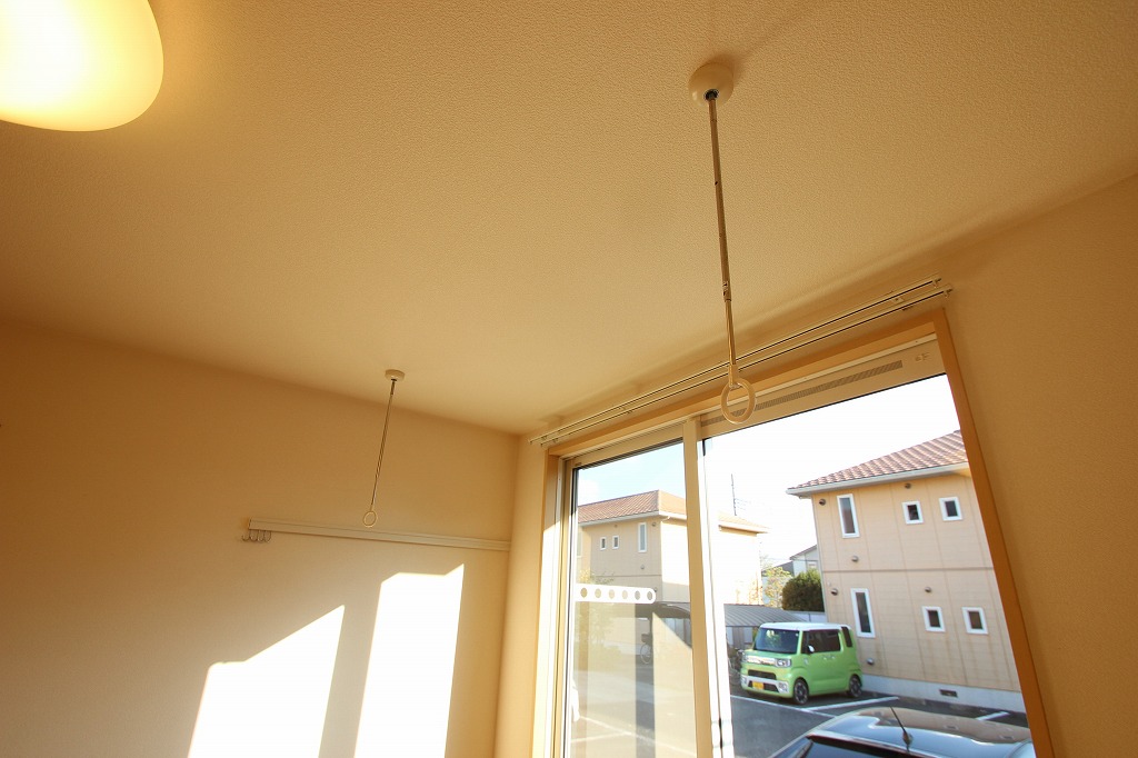 お部屋には室内物干しもありますので、雨の日のお洗濯も安心です!
