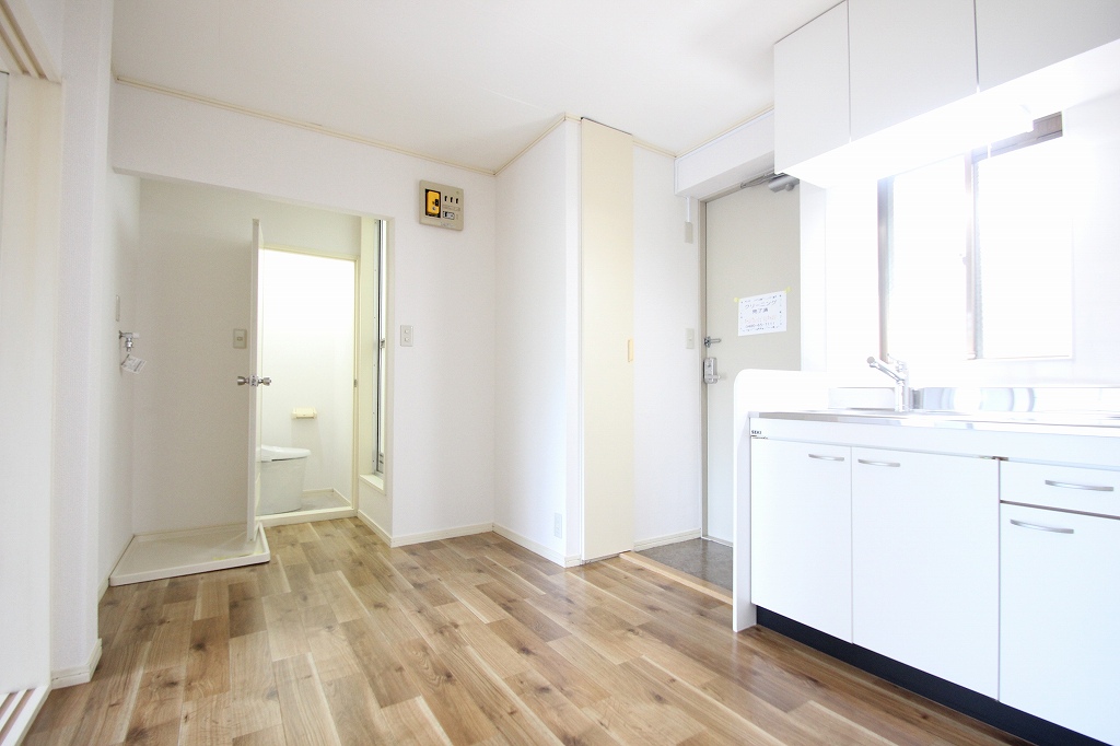 まずお部屋に入ると、広々としたダイニングキッチンが目に飛び込んできます。