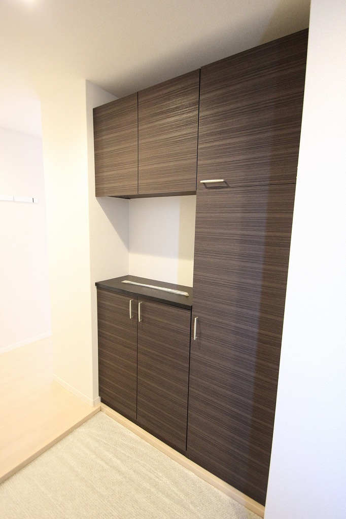オートロックや防犯カメラも完備されているので、セキュリティ面でも安心してお過ごしいただけますよ。中に入ると、まず驚くのが玄関の収納力の高さです!
