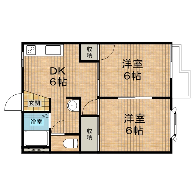 間取りは各部屋6帖の2DKタイプでございます!