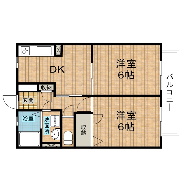 こちらの物件は積水ハウス施工の2DKとなっており、