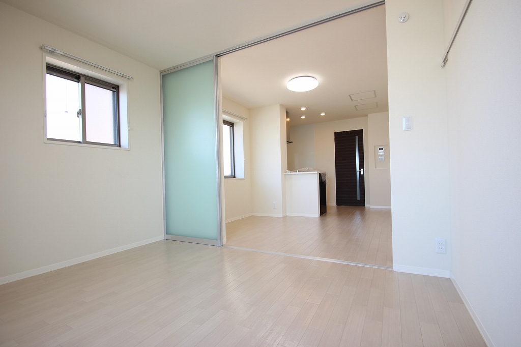 ▽洋室のスライドスクリーンを開ければ広めのワンルームとしてもご利用いただけます♪